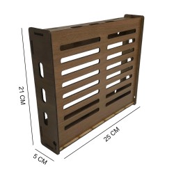 Duvar Kutusu T436, 3 mm MDF malzemeden lazer kesim yöntemiyle üretilmiş dayanıklı ve dekoratif bir kutudur. 25*21*5 cm boyutlarıyla duvarda özellikle küçük eşyaların, kabloların veya süs objelerinin saklanmasına uygun ölçüdedir. Ürün, lazer kesim sırasında oluşabilecek hafif lekeler nedeniyle, deterjansız nemli bir bezle silindiğinde kolayca temizlenebilir. Ürün, yapıştırıcı ile birlikte demonte olarak gönderilecektir.