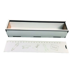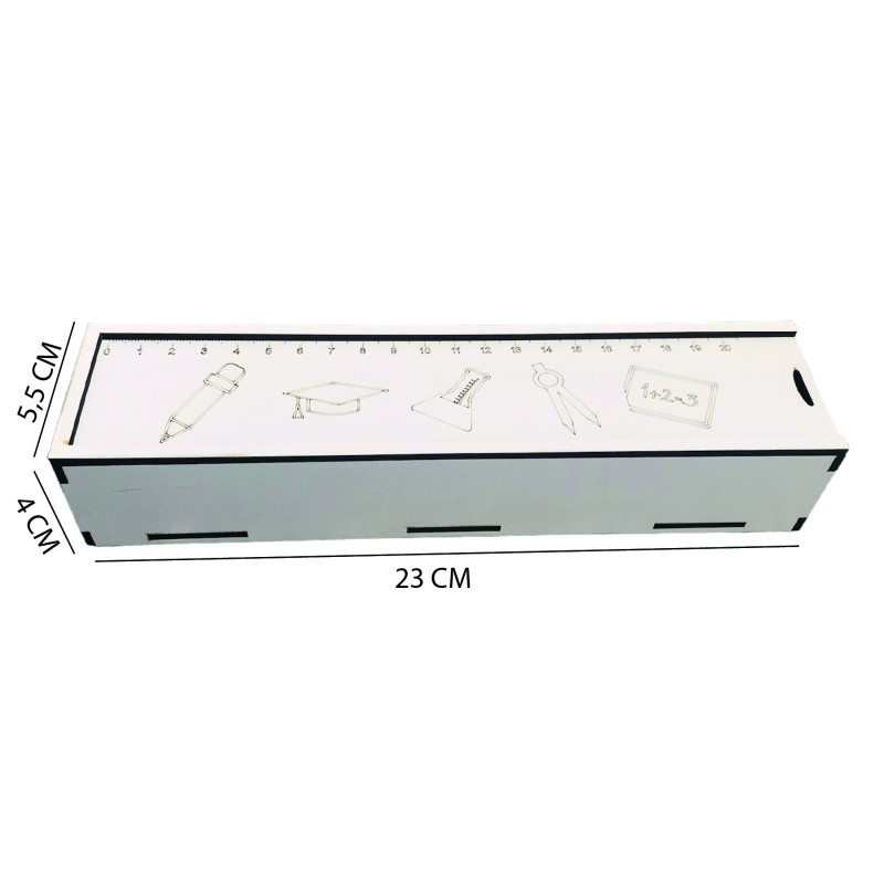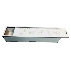 Sürgülü Kalem Kutusu T218, 3 mm MDF malzemeden lazer kesim yöntemiyle üretilmiş dayanıklı ve şık bir kutudur. 23*5,5*4 cm boyutlarıyla kalem, tükenmez, silgi gibi kırtasiye araçlarını düzenli şekilde saklamanızı sağlar. Ürün, lazer kesim sırasında oluşabilecek hafif lekeler nedeniyle, deterjansız nemli bir bezle silindiğinde kolayca temizlenebilir.