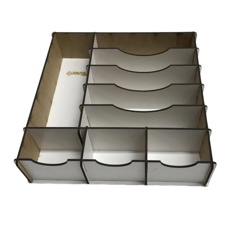 Çekmece İçi Ahşap Para Düzenleyici T75, hem estetik hem de fonksiyonel bir düzenleyici olarak tasarlanmıştır. 3 mm kalınlığında MDF malzeme kullanılarak lazer kesim yöntemiyle üretilmiştir. Bu sayede, ürün hem dayanıklı hem de şık bir görünüme sahiptir. 25×25×6 cm ölçülerindeki bu düzenleyici, çekmecelerde yer kaplamadan küçük eşyalarınızı organize etmenize yardımcı olur.