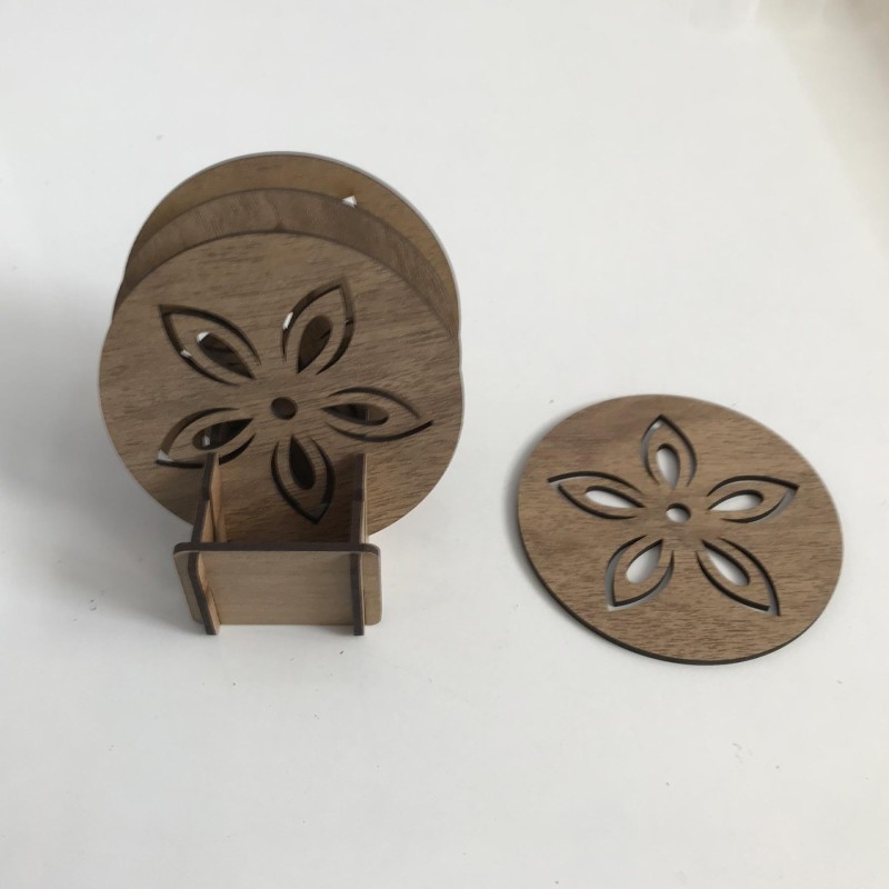 Standlı 4'lü Bardak Altlığı T231, 3 mm MDF malzemeden lazer kesim yöntemiyle üretilmiş dekoratif ve kullanışlı bir mutfak aksesuarıdır. 10×10 cm ölçülerinde her bir altlık ile fincan, bardak ya da küçük kaplar için ideal koruma sağlar. Ürün, lazer kesim sırasında oluşabilecek hafif lekeler (kara) nedeniyle, deterjansız nemli bir bezle silindiğinde kolayca temizlenebilir.