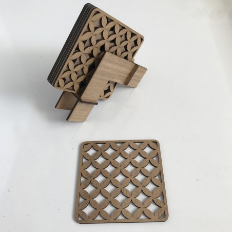 Bardak Altlığı T234, 3 mm MDF malzemeden lazer kesim yöntemiyle üretilmiş dekoratif ve işlevsel bir mutfak aksesuarıdır. Her bir altlık 10×10 cm ölçülerindedir; altlıklar, stand ile birlikte sunulur. Ürün, lazer kesim sırasında oluşabilecek hafif lekeler nedeniyle, deterjansız nemli bir bezle silindiğinde kolayca temizlenebilir.