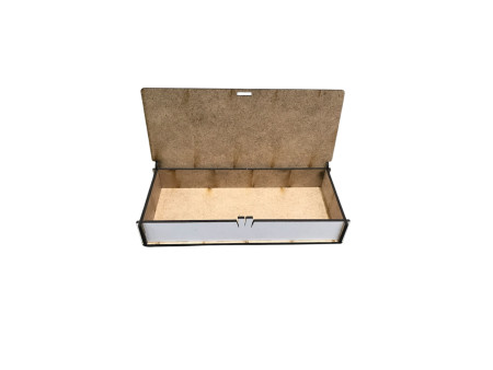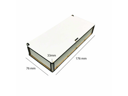 Ahşap Kutu T264, 3 mm MDF malzemeden lazer kesim yöntemiyle üretilmiş şık ve kullanışlı bir saklama çözümüdür. Dış ölçüleri 176×76×33 mm, iç ölçüleri ise 165×65×25 mm'dir; kompakt yapısı sayesinde masa üstü düzenlemelerinde idealdir. Ürün, lazer kesim sırasında oluşabilecek hafif lekeler içerebilir; deterjansız nemli bir bezle silindiğinde kolayca temizlenebilir.
