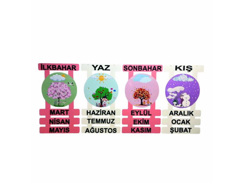 Mevsimler Tablosu T73, 3 mm MDF üzeri 3 mm mdf yazı ve etiket baskı malzemelerle lazer kesim yöntemiyle üretilmiştir. Boyutları 40×70 cm olup, yaşam alanlarınıza estetik ve anlamlı bir dokunuş katmaktadır. Resimler Etiket baskıdır, sararmaz solmaz. Ürün lazer kesim sırasında oluşabilecek hafif lekeler içerebilir; deterjansız nemli bir bezle silindiğinde kolayca temizlenebilir.